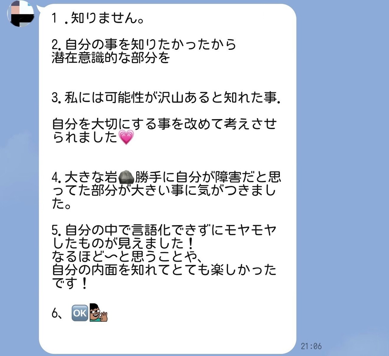 なるほど~と思うことや、自分の内面を知れてとても楽しかったです!